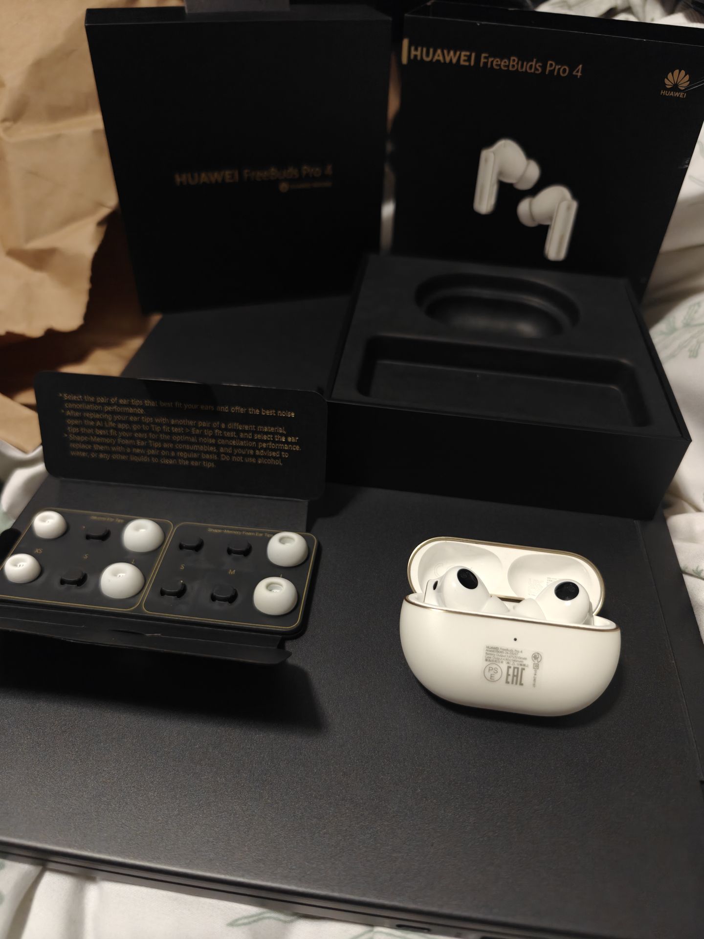 Selling my Huawei FreeBuds Pro 4 in excellent condition. They have been gently used and are practically like new. ✔ 100% fully functional ✔ Clean and well maintained ✔ Includes original box ✔ Includes most ear tips (missing 2 ear tips) ✔ Great sound quality and noise cancellation The earbuds have been carefully handled and show minimal to no signs of wear. The charging case works perfectly and holds charge as it should. Perfect option if you want high-end earbuds for a lower price.