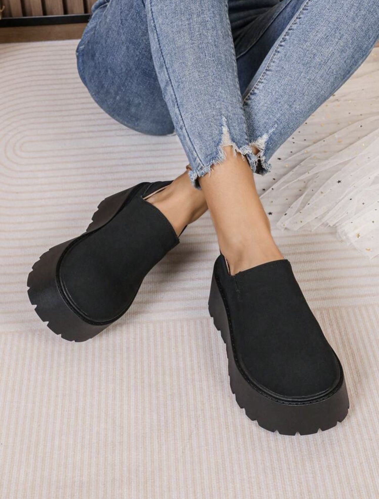 Women's High Waterproof Platform Wedge Heels, The Most Fashionable Black Elastic Band Slip-On Round Toe Vintage Classic 7cm Wedge Shoes, European And