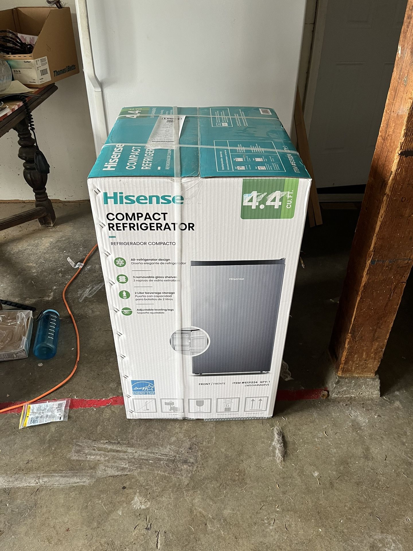 Brand New! If interested I have the receipt as proof of purchase. This energy star 4.4 cu. Ft. Silver mini fridge LMS044M6RVE is perfect for college dorms, break rooms, or just extra storage for your home and office space. The adjustable legs and reversible door design allow for placement of this mini refrigerator virtually anywhere you need. The sleek and fashionable All-Fridge design does not compromise its functionality. This model has convenient storage shelves on the door for a 2 -Liter bottle as well as extra space for single -serve yogurt or other condiments/snacks. Removable fresh -food glass shelf provides storage for larger items to efficiently utilize interior capacity. • 2L beverage storage • Energy star certified • Reversible door to open left or right, based on your needs • Adjustable legs for easy installation • Adjustable temperature control • All-refrigerator design for extra storage for fresh food • Low noise • Modern and ergonomic design of door handle