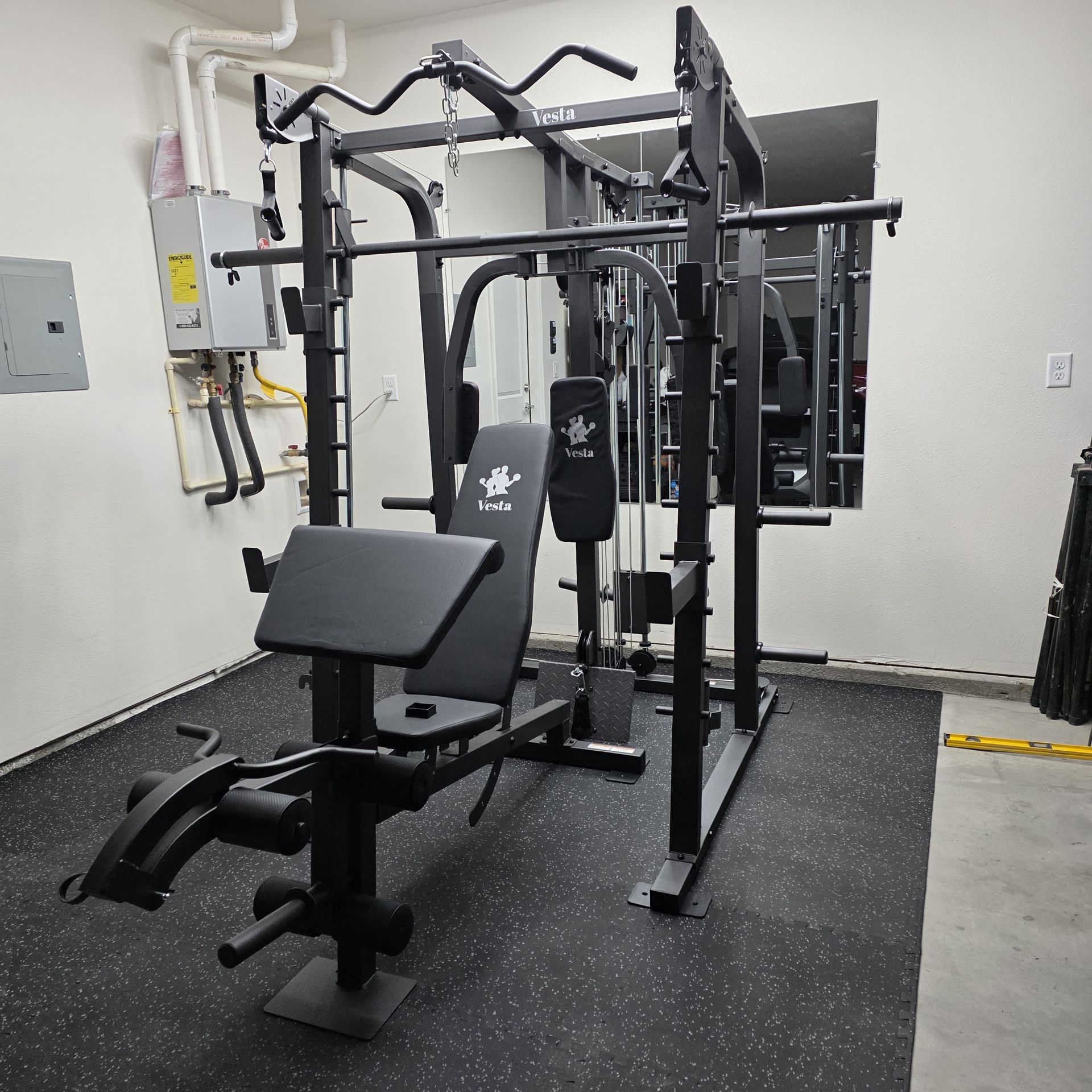 FREE DELIVERY 🚚 INSTALLATION AT EXTRA COST $$$ SHOWROOM AVAILABLE! NEW IN BOX! Need more photos let me know. Also have a Video available! 📷 《Offer only includes》 ✅️Vesta Smith Machine Sm2001 w all accessories and cable Attachments ✅️Multi-use Adjustable bench w/ leg workout station and precher station for biceps 💪 ‼️WEIGHTS AND EXTRA BARBELL ARE NOT INCLUDED ‼️ Vesta Sm2001 Smith Machine accessories and features ! Includes -- -- Hooks -- Spotter Arms -- 2 top side pulleys -- 1 Bottom back pulley -- 1 top center pulley -- Smith Barbell w/ saftey hooks! -- 2 D handles -- Ankle Strap -- Multi use Adjustable Bench with leg developer! Dimensions 86" Tall x 72" Wide x 83.5" Deep 🔴🔴🔴NEED BARBELL AND SET OF WEIGHTS 🔴🔴🔴 CHECK OUT THIS DEAL DOWN HERE! 🔥🔥$$$$$$1250 Bundle Deal 🔥🔥 ✅️Vesta Smith Machine SM2001 ✅️ Multi use Adjustable bench w/ leg developer ✅️230lbs Bumper Weights 45s/35s/25s/10s ✅️7Ft 45lbs Olympic Barbell w/ pair of clips! 🚛FREE DELIVERY 🚚 Intrested in more gym equipment shoot me a message! I can Help you Build Your Home Gym! Dumbells, kettle bells, more squat racks and Smith machines available