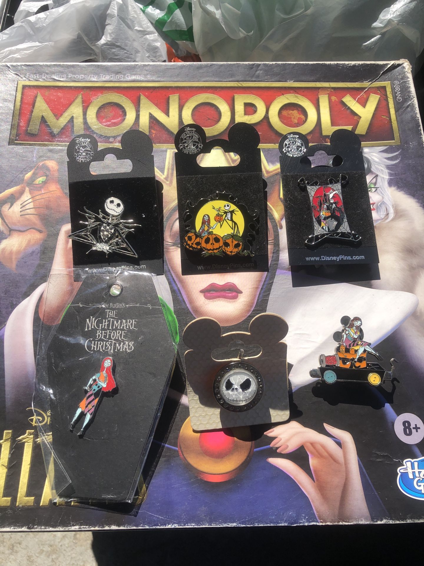 Disneyland exclusive Nightmare Before Christmas pins $10 for Sally pins, $15 for Jack pins and ring, $20 for largest pin or everything for $60