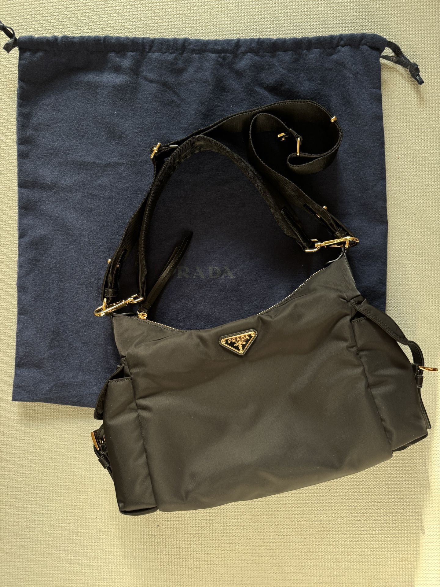 Prada renylon shoulder/crossbody bag Comes with 2straps and dust bag Gold hardware Worn once Size measurements: 12.6" x 8.6 x 4.5