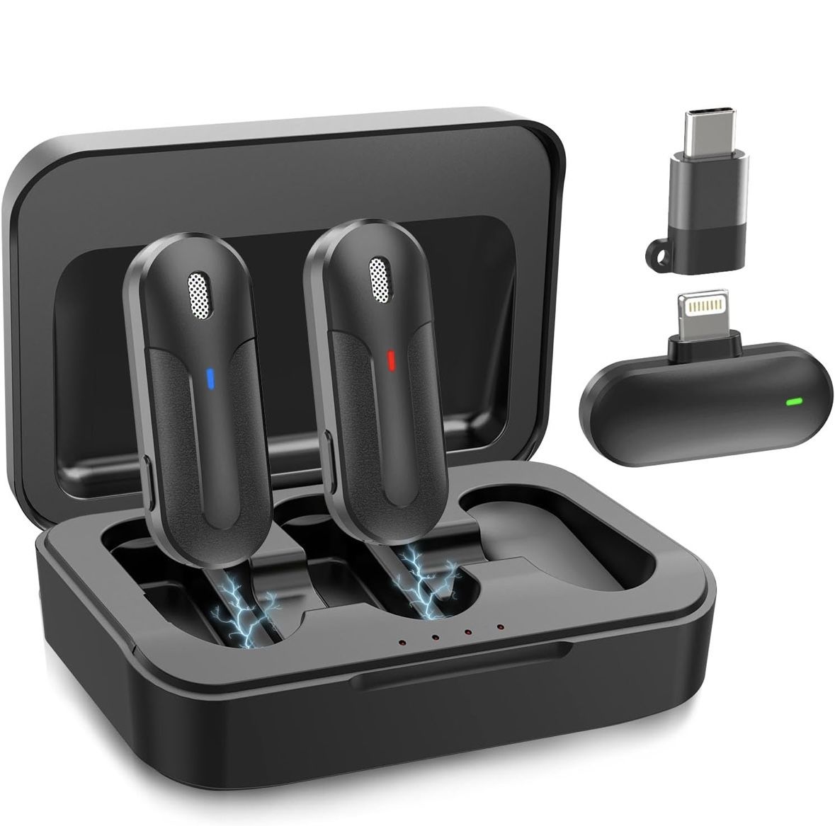 Wireless Lavalier Microphone, Mini Microphone for iPhone,iPad,Android, 2 Pack Lavalier Mics with Charging Case, 2.4G Dual Channel Wireless Clip Mics for Video Recording,Interview,Live Streaming Brand New