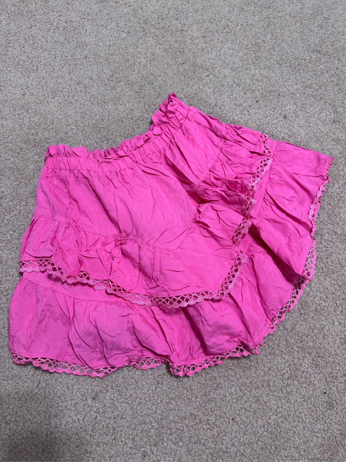 New Xs pink ruffle short mini skirt skort boho stretchy