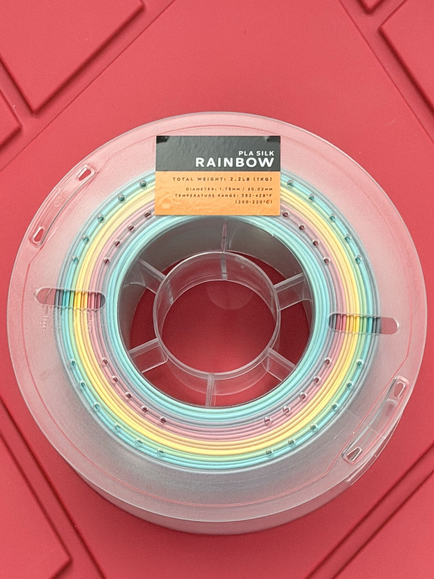 Lightly used silk rainbow pla 3d printing filament. I used it for a few project and realized my printer does not really like silk filament. Nothing wrong with it
