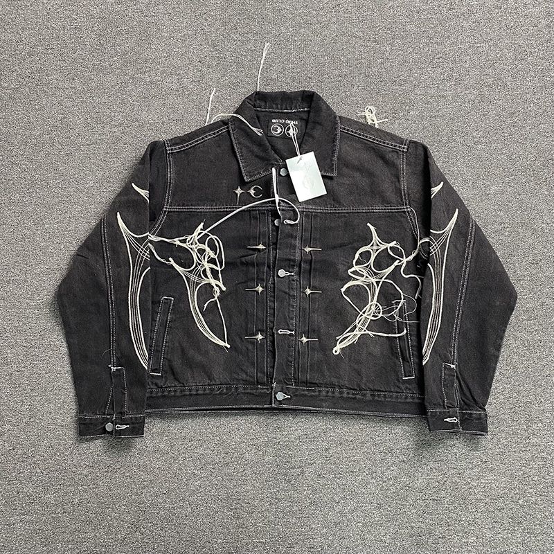 Thug Club Thread Embroidered Loose Jeans Jacket
