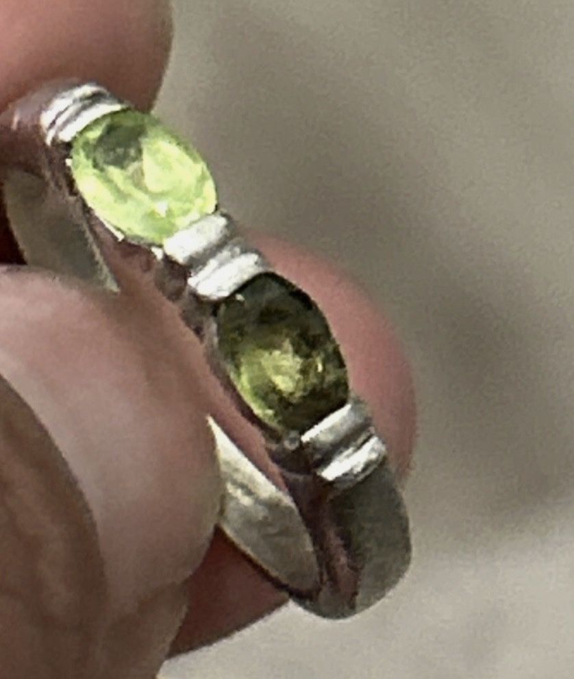 Vintage DESIGNER CI 925 STERLING SILVER 2 OVAL BEZEL SET PERIDOT STONE STACK BAND RING
