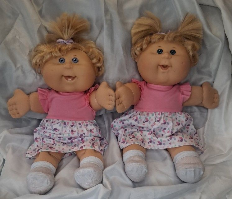 Vintage Cabbage Patch Kids Girl Doll Twins Blonde Hair Blue Eyes Full Outfits