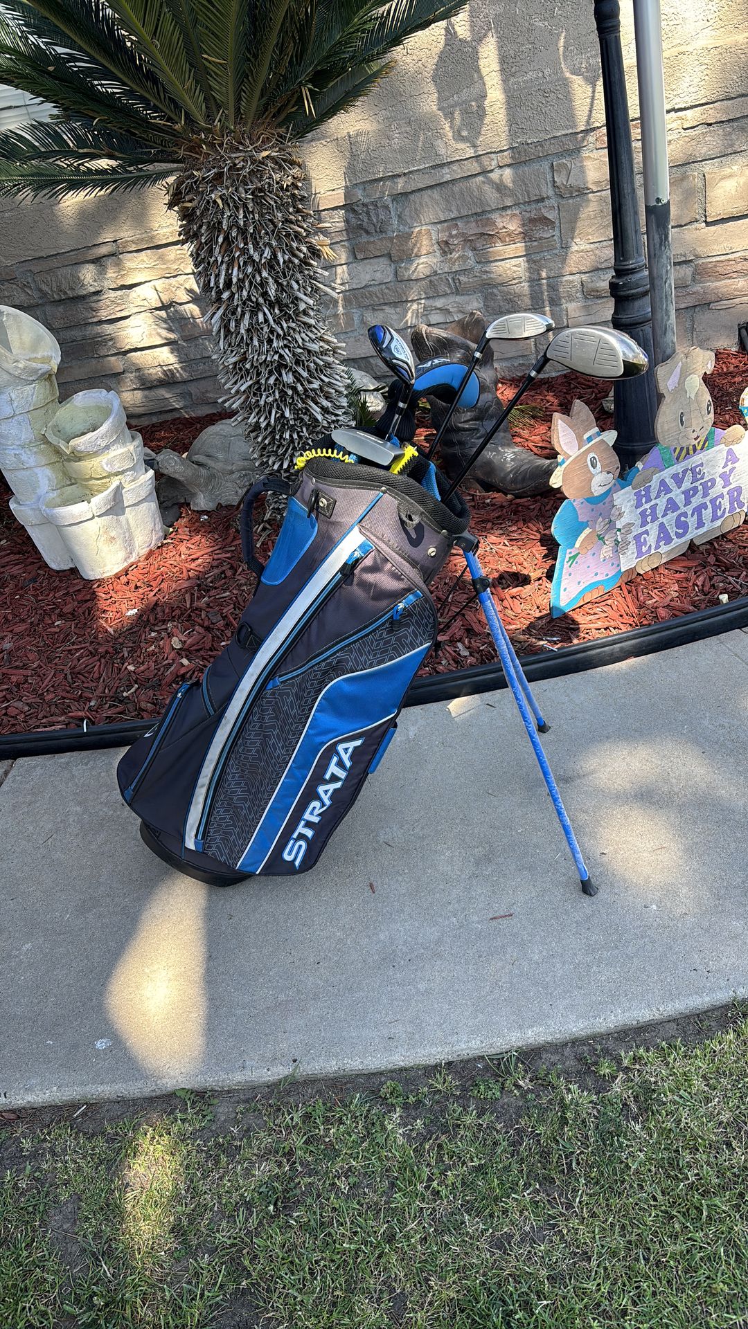 Callaway -strata, golf bag and clubs in very good condition, not a complete set has a total of 5 one of them being a putter, one of them being a driver, one of them being a 5,4,3.iron.$120 firm.