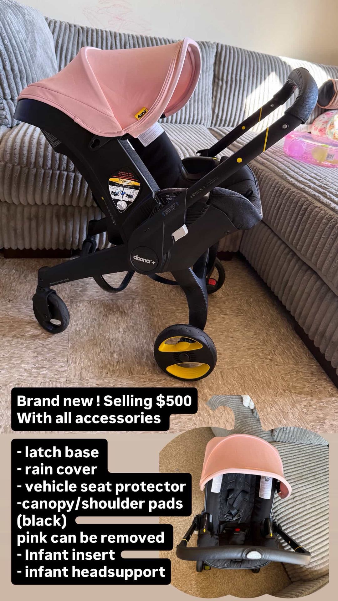 i’m selling this stroller for my cousin but on one of the pictures everything that comes wit the stroller is included , the pink park of the stroller is sold separately if u would like to change its color