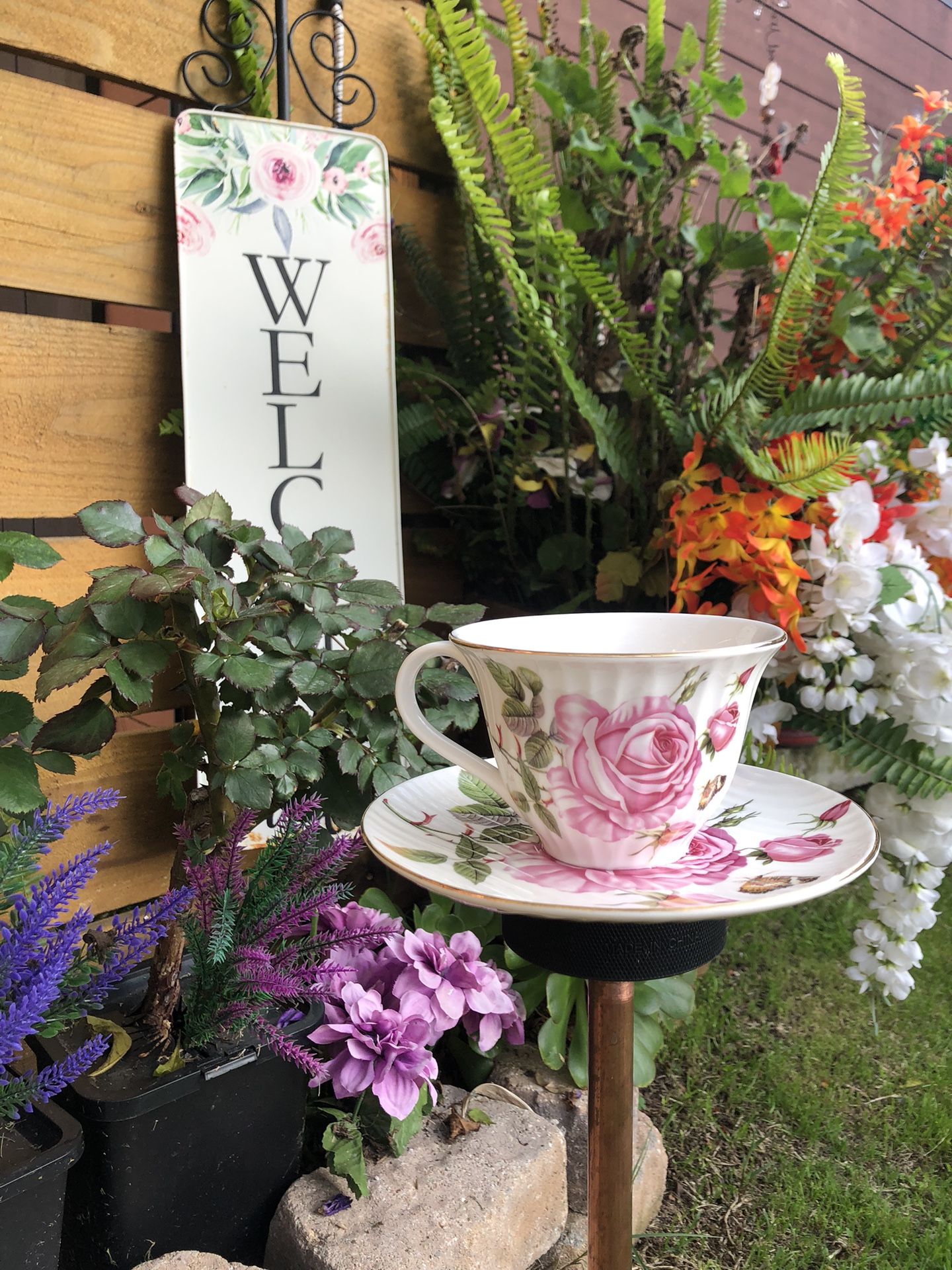 Brand New Teacup bird feeders that are up for sale. I cup laying down and 1 standing up. Again all bird feeders come with a 5’ by 1/2” copper pole and a small bag of bird feed. Great Mothers Day gifts! 29 dollars each Thanks for stopping in.
