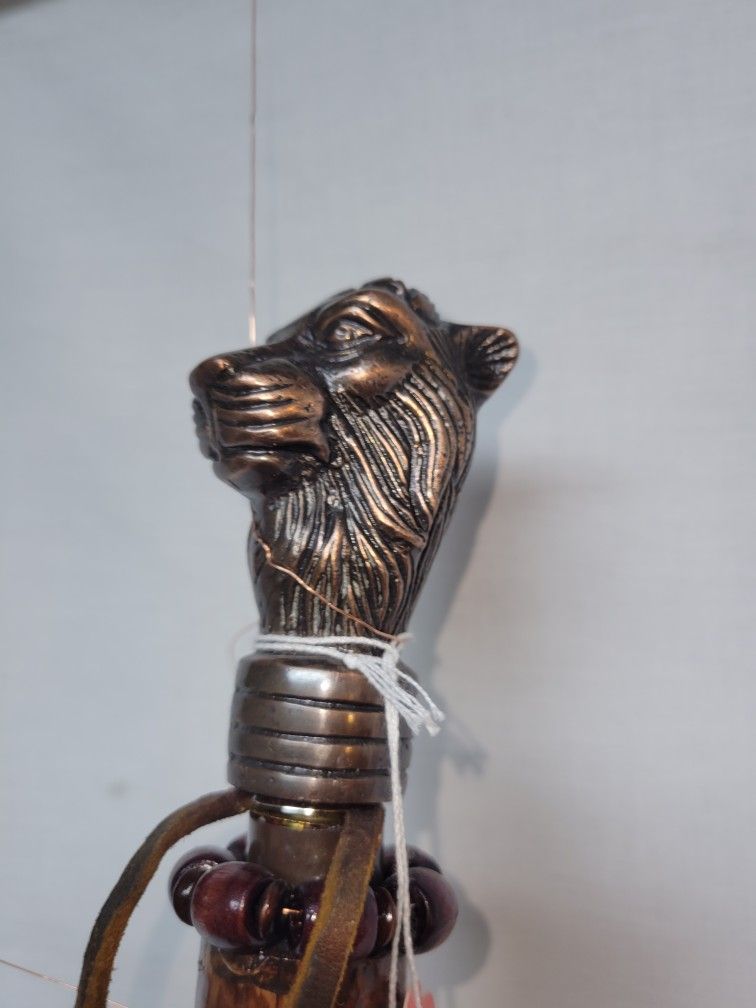 HANDMADE WOOD WALKING STICK WITH LION HEAD 58in