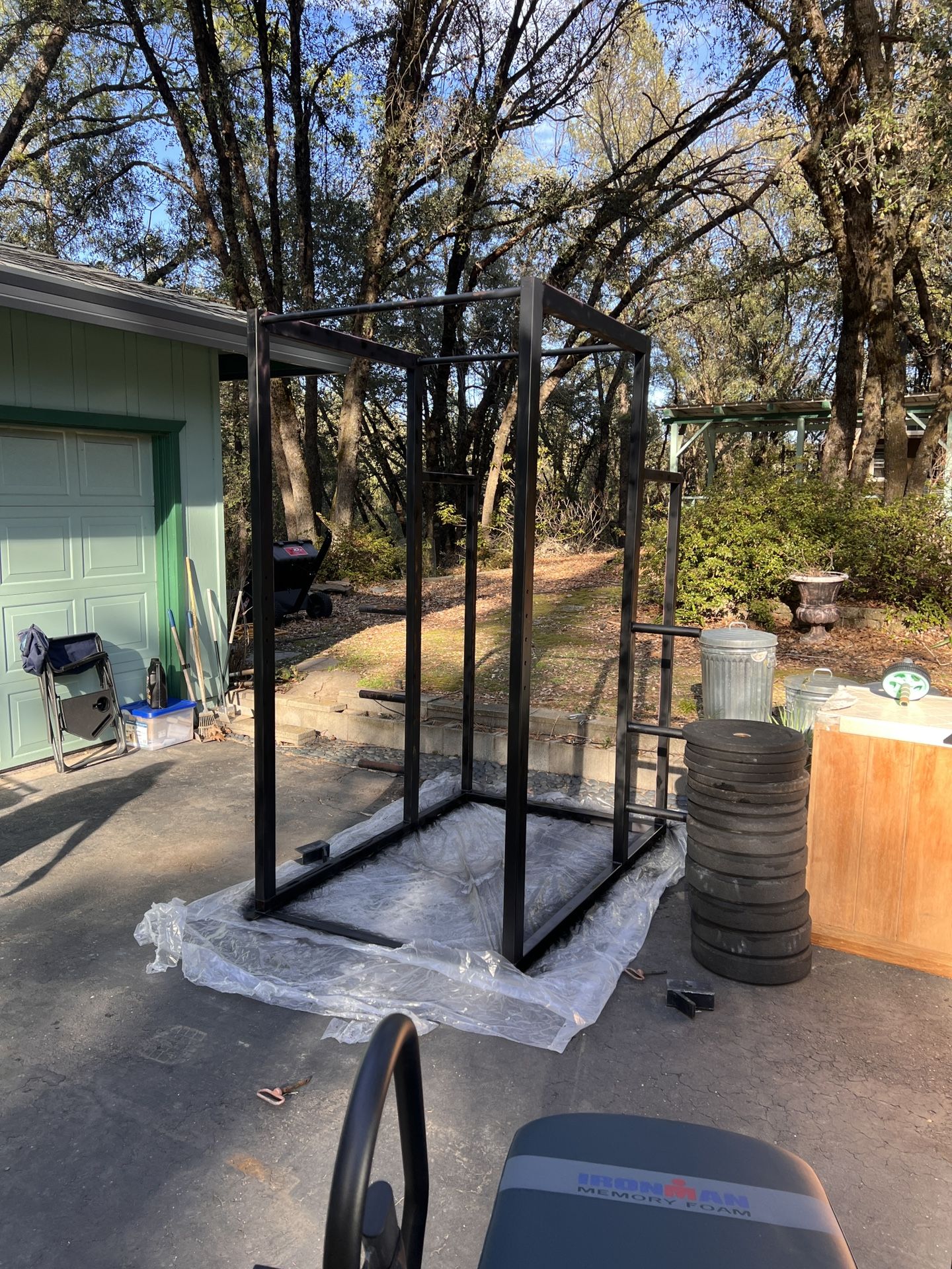Rig with 260 lbs of Rogue plates. 2 pull up bars, squat rack, and Bench height. All the way from 10 lbs to 45 lbs. $500 obo. It has been outside but everything is functional.