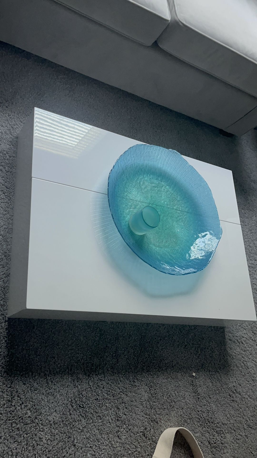 Never used lift top hi gloss white lacquer coffee table. Legs still in box. Minimal to no wear - great condition!