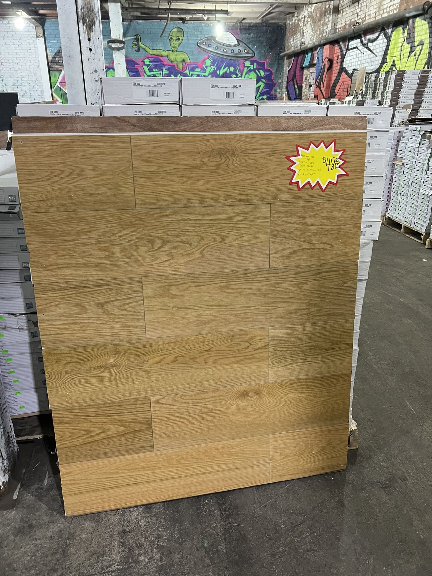 Medium Oak LVT rigid core Brown 100% waterproof Pet friendly Attached underlayment Easy locking installation Hides subfloor imperfections Scratch resistant Stain resistant Install on any level of your home 7.76” W x 60” L 8mm thick 25.87 sq/ft per case 8 planks per case $1.85 per sq/ft 85 cases available 2198.95 sq/ft available Lakeside Liquidator: $48 per case/ $1.85 per sq/ft