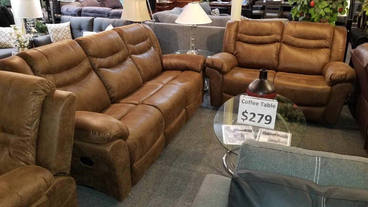 Brand New Brown Leather Manual Reclining Sofa + Loveseat 2PCs Set