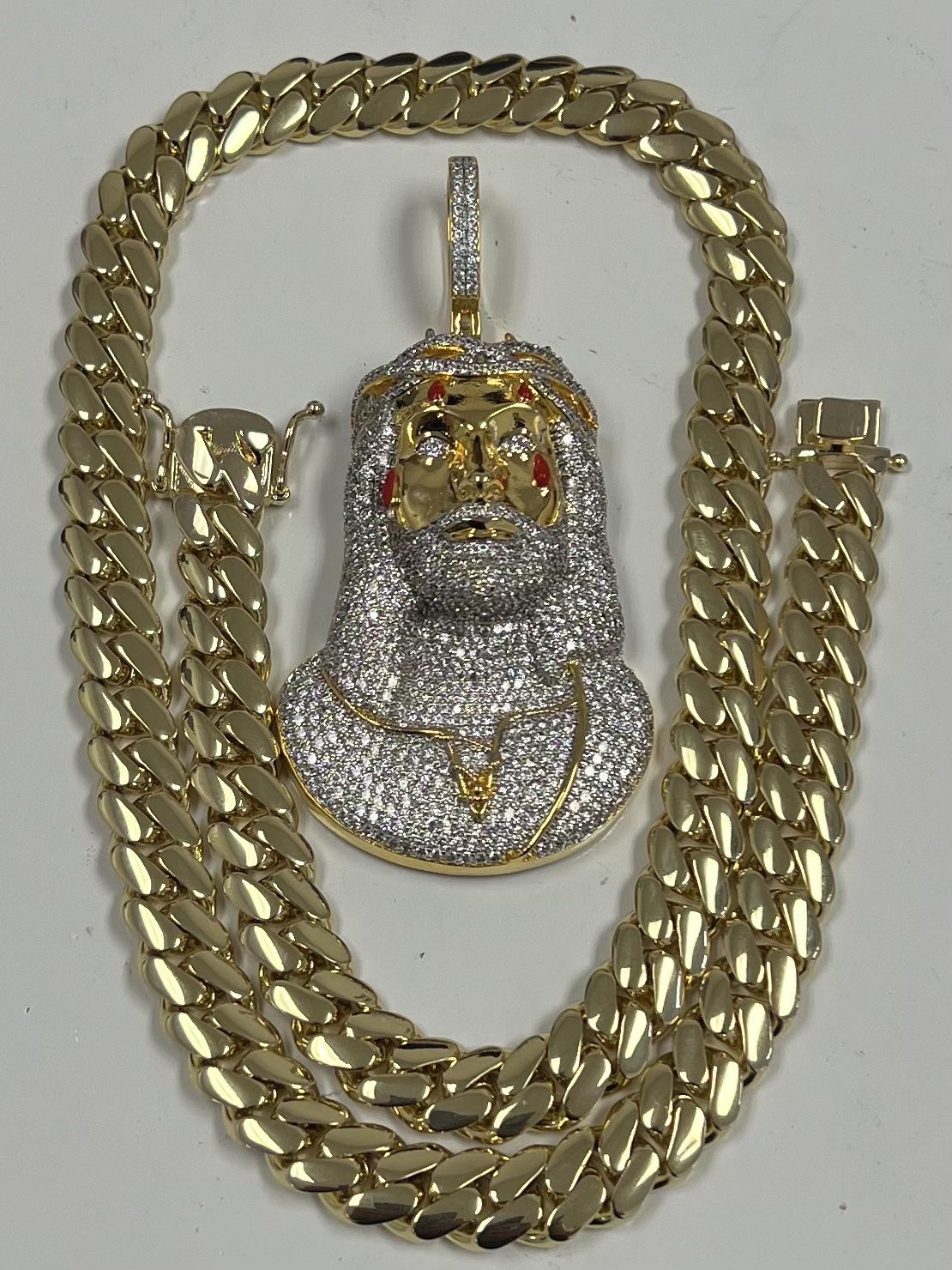 iced out AAA+ simulated lab diamonds Jesus pendant and Cuban necklace🔥🔥🔥