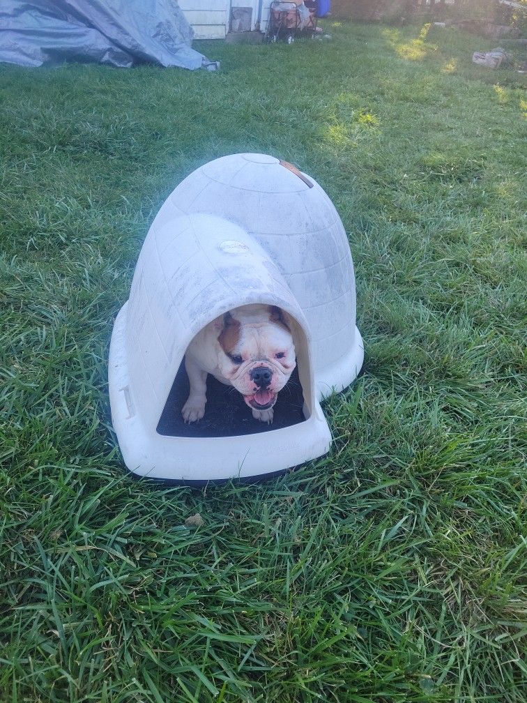 Used Large Petmate indigo all weather dog house. Originally paid $200 will take $40 O.B.O My dog loves it has used it for 2 years but we got her a bigger one 😊