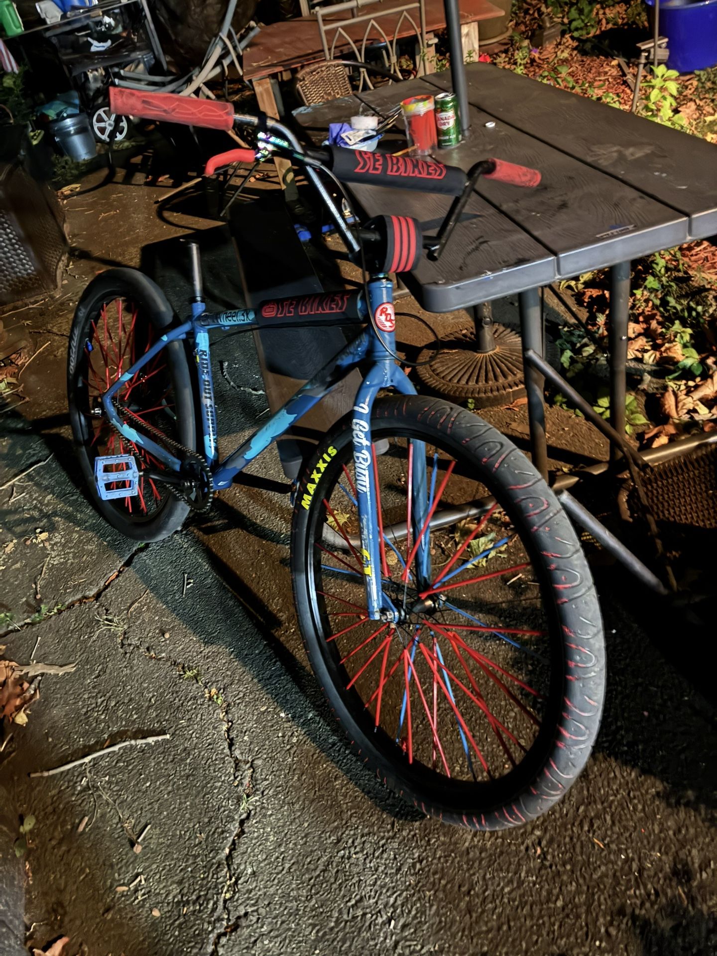 Comes with seat just took it off Throw me offers It’s not 1$ Not stock handlebars Rainbow chrome disc brakes Comes with reflective spoke skins