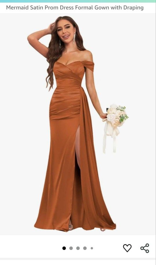 Brown satin dress has pockets and slit was closed up a bit. $30 Size XL Kay Unger brand ...Nude/gold A line dress never worn has pockets and is long! I'm 5'6 and covers my feet. $50 Size 12 White and black Calvin Klein dress Size 10..... $40