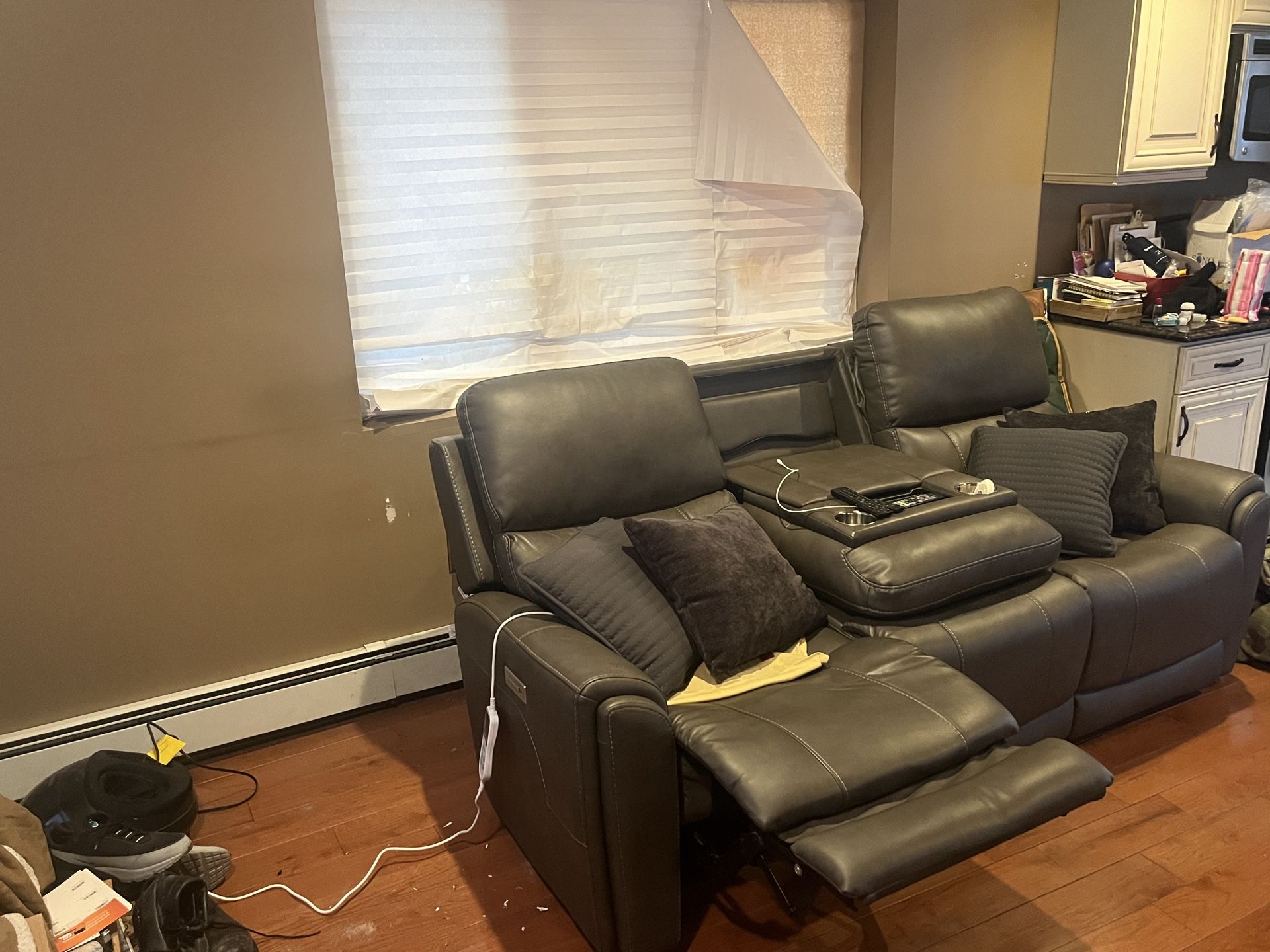 Leather 3 seat reclining sofa. Has electric foot rust lumbar support, and address. Outlets and phone charging stations are in the island in the middle. Less than a year year old. Negotiable