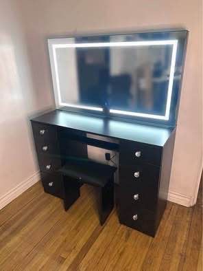 SALE! New Black Lighted Mirror Makeup Vanity Desk 8 Drawers, 43" Vanity Table