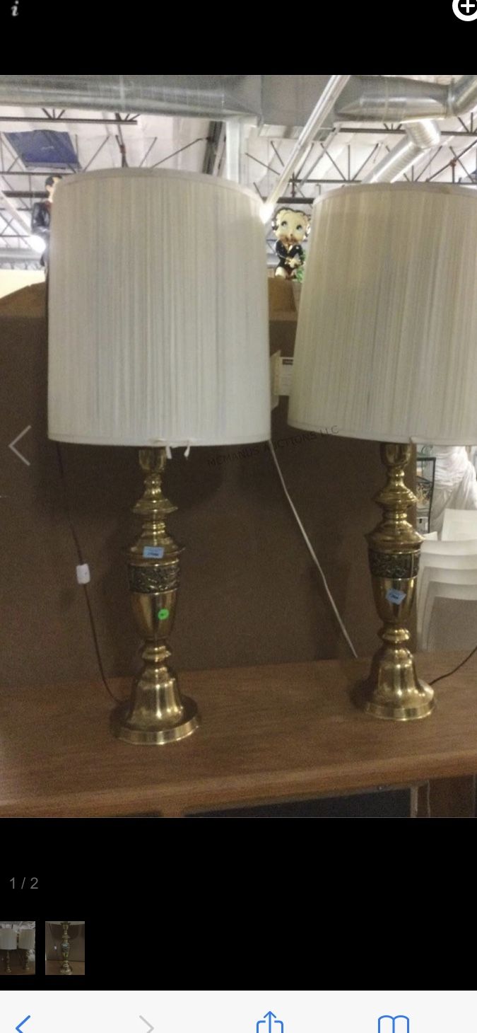 Pair of brass lamps