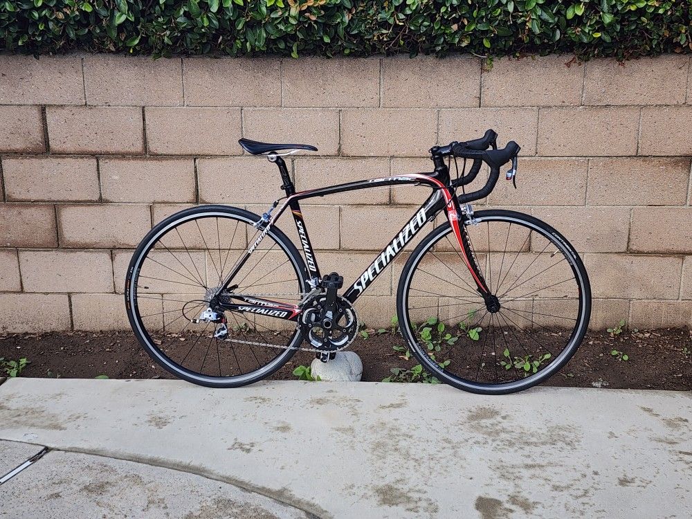 Specialized Tarmac Pro SL SRAM RED Doubletap groupset. FACT 10r Carbon Race/Road Bike. Size Small 52CM. Fits about 5'4" - 5'8". Team Carbon/Red finish. Weighs 16.25lbs w/o pedals. SRAM RED Full Groupset, SRAM RED 172.5mm Carbon Crankset with new 53/39 FSA Chainrings. SRAM RED OG-1090 11-25t Rear Cassette. Cane Creek Carbon Headset, Deda Magic Drop Bar, Black SRAM hood covers, 70mm Stem, Specialized Carbon Seat Post (still has plenty of adjustment), S-Works Seat Post Clamp, Specialized Romin Expert saddle. Shifter/Brake cables just replaced. Bontrager Affinity TLR wheels with good 700x23mm Continental Grand Prix 5000 tire in front/new 700x25mm Continental Ultra Sport III tire in the rear. Flat pedals included for test riding. Will also include SRAM Pg-1070 11-23t rear cassette, old SRAM Powerglide 53/39 Chainring, Red SRAM hood covers. Has paint chips/scratches here and there. Left side of the top tube where the tarmac decal is clearcoat/some of the striping peeled off when removing tape that was applied there for a top tube bag. Put on some clear coat on top the prevent it from peeling further.