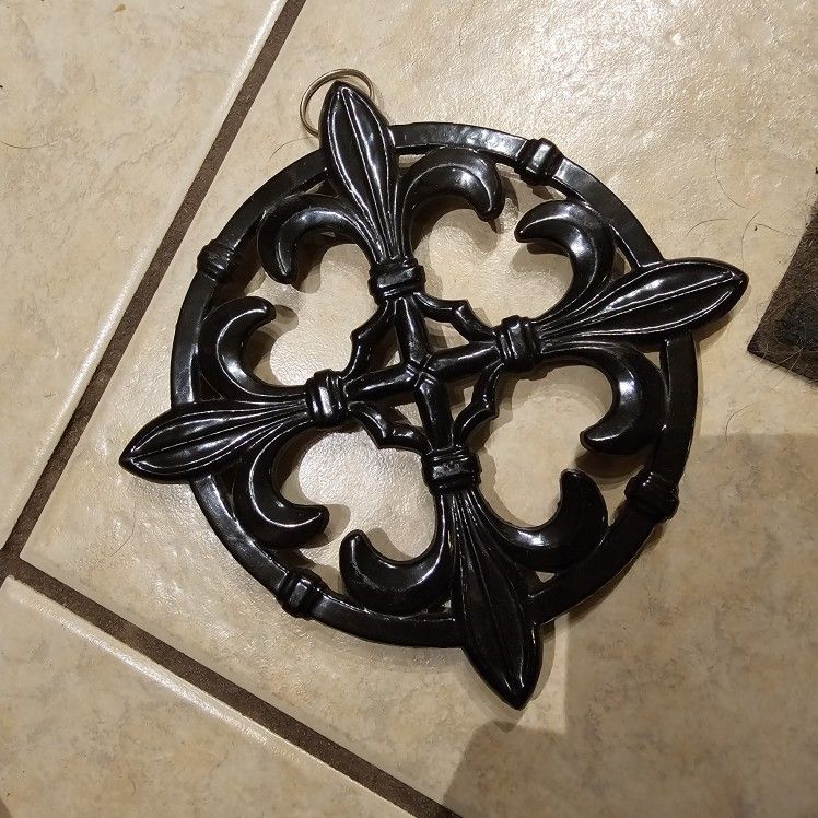 Old Dutch Jet Black Fleur De Lis Trivet, 9-Inch