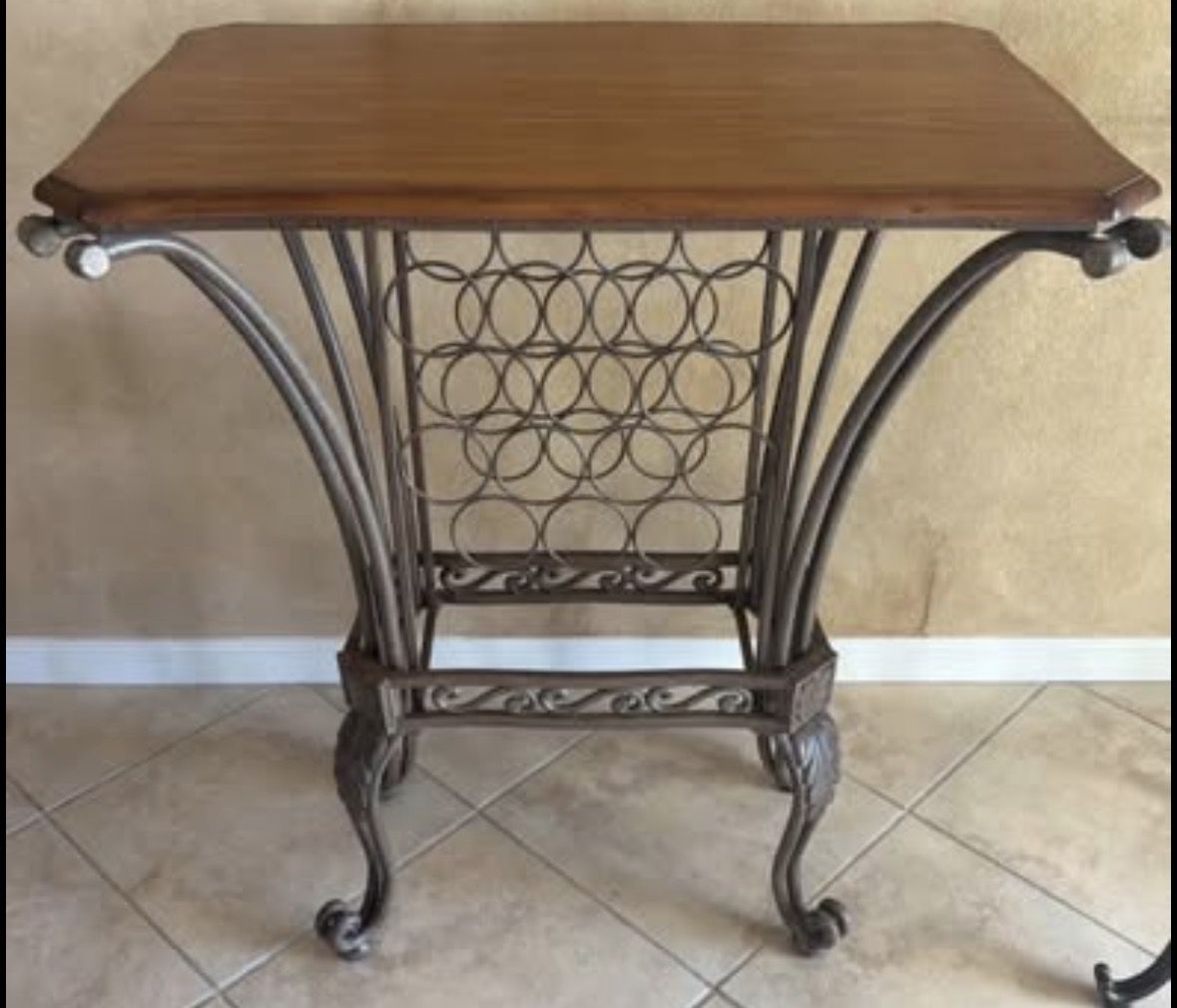 Table Wine rack table holds 14 bottles Smoke and pet free home Metal with wood top 33“ tall and 35” long Pick up Roseville Cash or Venmo