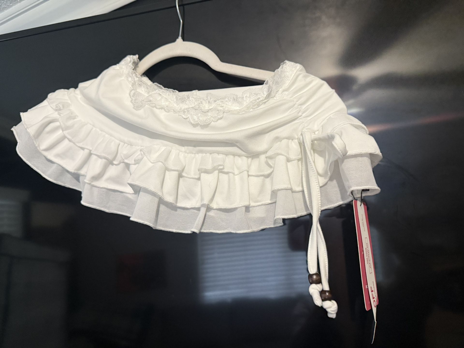 Brand new white skirt with lace and built in shorts underneath Size XS Brand is Romwe