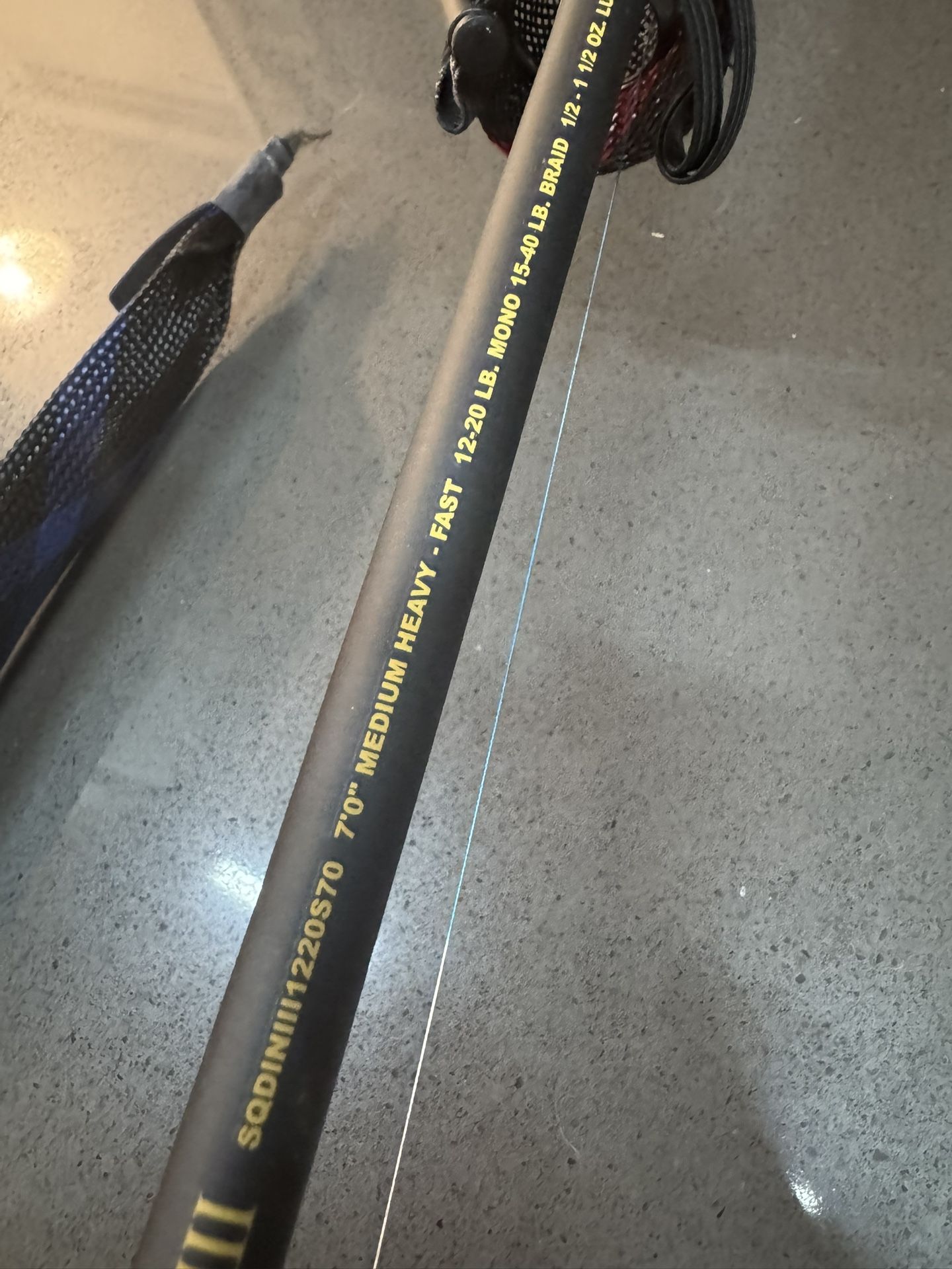 Penn Fierce Combo 5000 Aftermarket handle and knob. New 45 lb braid. Penn squadron rod 7’ one piece M/H $125 Barely used