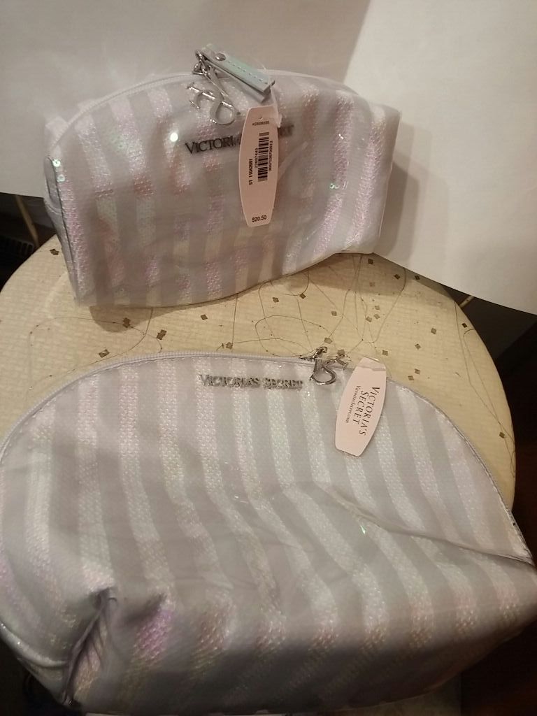 Victoria's Secret 2 White Striped Cosmetic Bag, Original Prices: $20 to 24/each