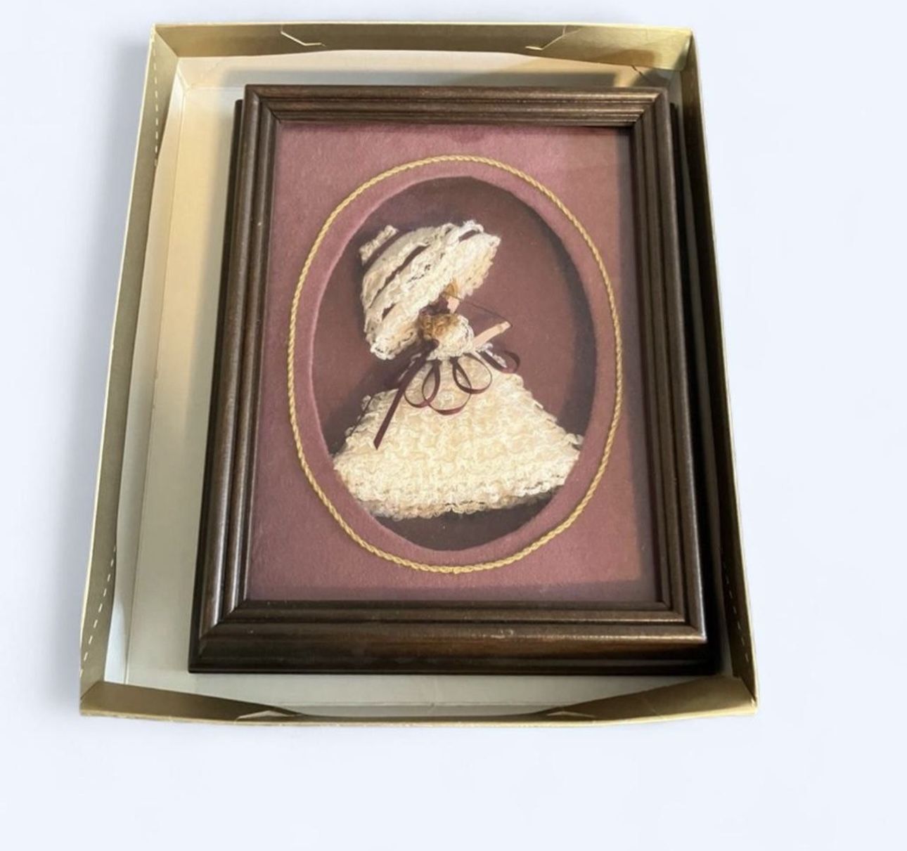 VTG ANTIQUE FRAMED LACE,RIBBON,DOLL GIRL IN OLD DRESS PICTURE ART