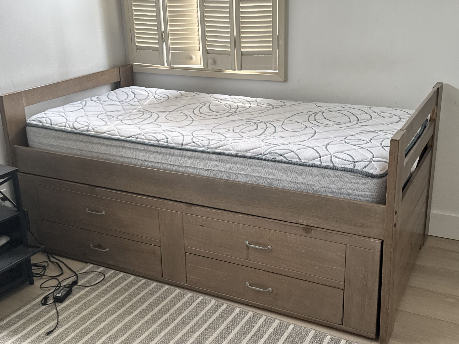 Twin bed in excellent condition. Bed comes with a trundle bed and 2 drawers at the bottom.
