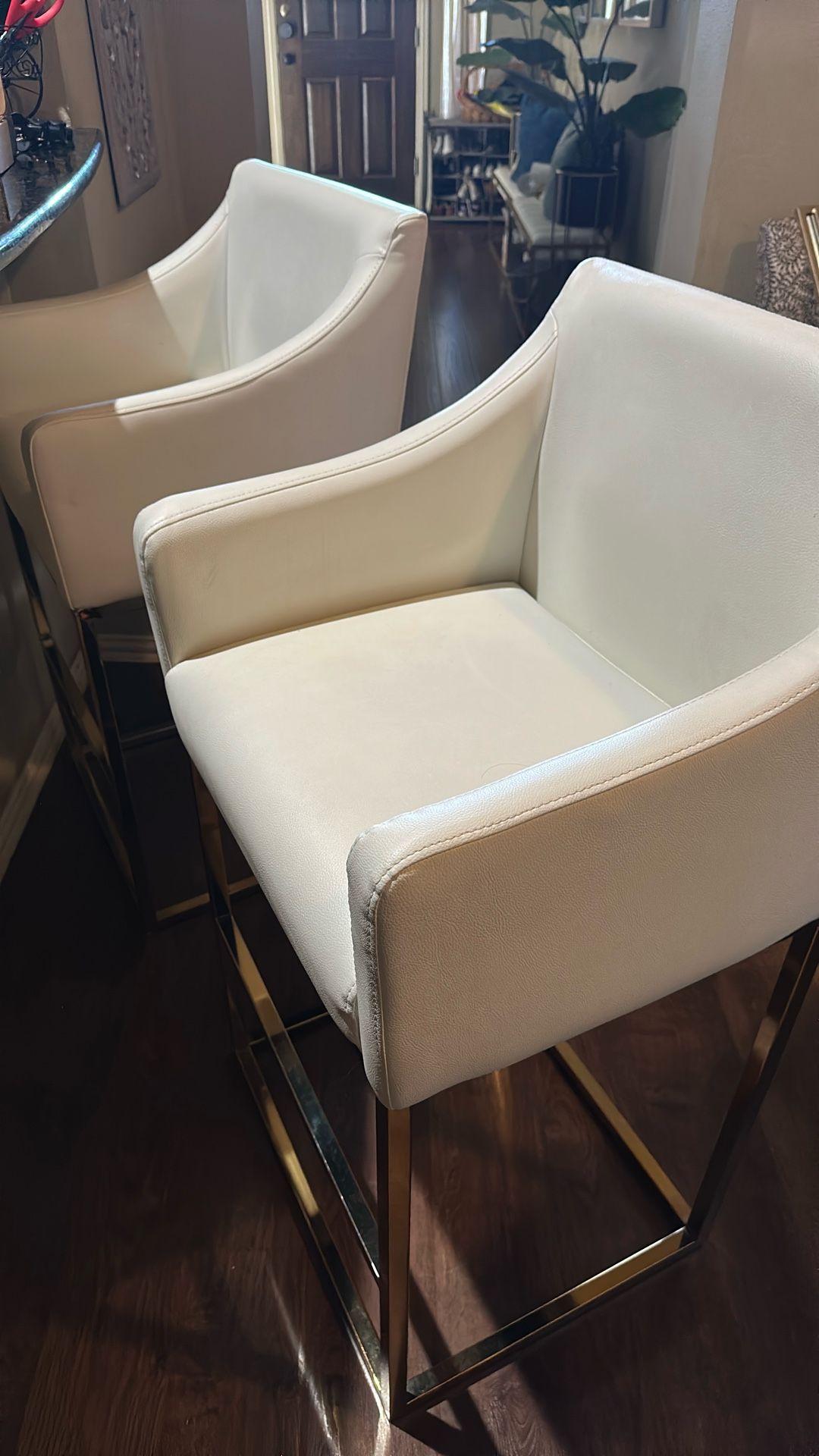Bar Stool Chair PU Leather Upholstered Slope Arm Design Architectural Goldtone Solid Metal Base Modern Contemporary, Cream Dimensions 20.75"D x 21.5"W x 42.25"H Seat Height 29.25 Inches Item Weight 12.6 Pounds