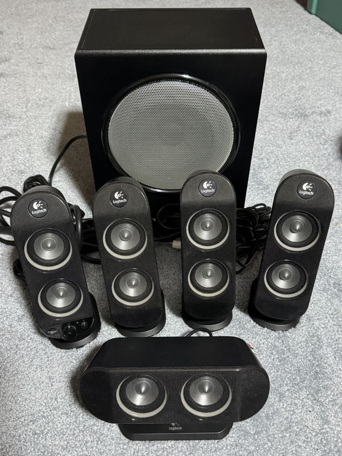 Logitech X-530 5.1 Surround Sound Computer Speaker System Excellent condition. Some minor cosmetic wear on the subwoofer housing. Tested working.