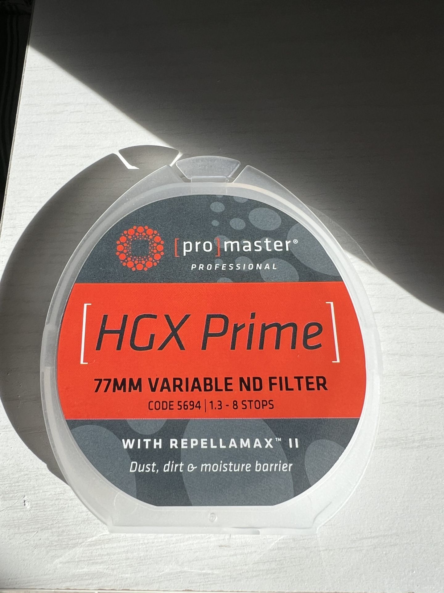 Brand new ProMaster HGX Prime 77mm Variable ND Filter — never opened. I ordered this while shooting a documentary overseas and ended up not needing it. Missed the return window so it’s been sitting unused. This is a high-quality professional variable ND designed for filmmakers and photographers who need to control exposure while maintaining cinematic shutter speeds. Details: • 77mm thread size • Variable ND 1.3–8 stops • ProMaster HGX Prime optical glass • Repellamax II coating (repels dust, moisture & fingerprints) • Excellent for video work and bright outdoor shooting Works great with cameras like Sony FX3, FX30, A7 series, Canon R, Nikon Z, or any lens with a 77mm filter thread. Retail is about $209 — asking $170 OBO. Local pickup preferred.