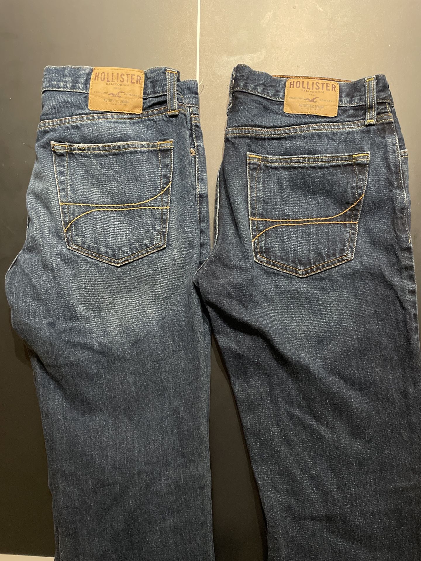 2 pairs of Hollister jeans that are both size 32x34. $15 each or $25 for both. Both pairs of jeans have no rips or holes.