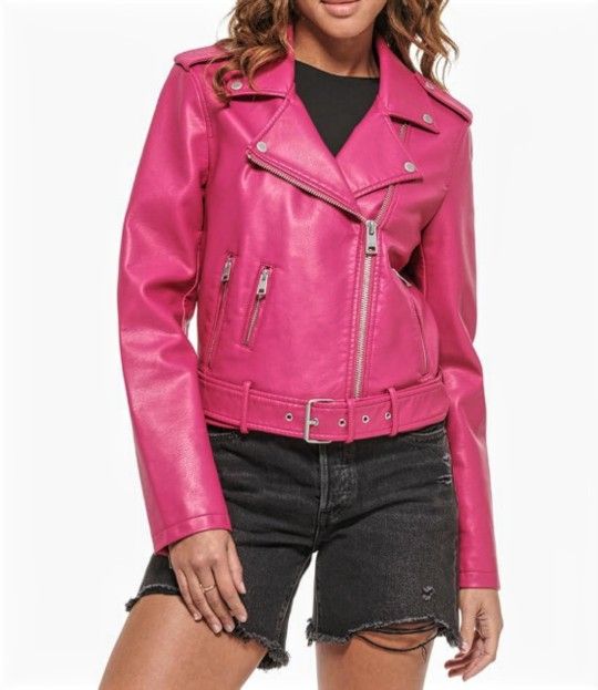 Levi's pink moto leather jacket Size M $45