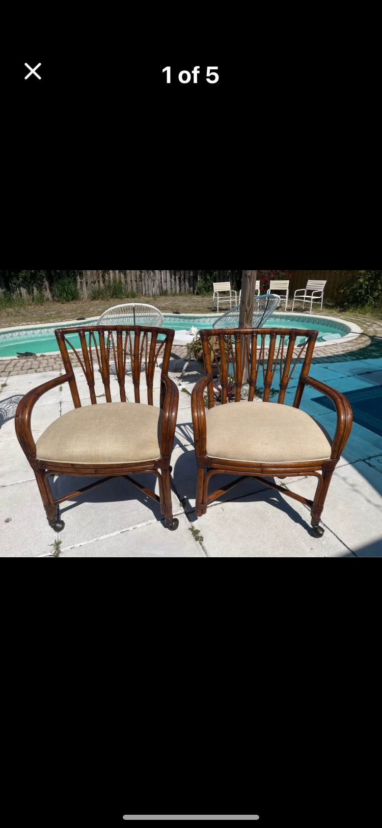 Two Lexington/ Tommy Bahamas samba chairs. Bamboo/ Rattan . On casters . One caster missing , priced accordingly and FIRM. See photos. These chairs retail for $1,100.00 each. They’re a steal . Local pickup in Lake Worth