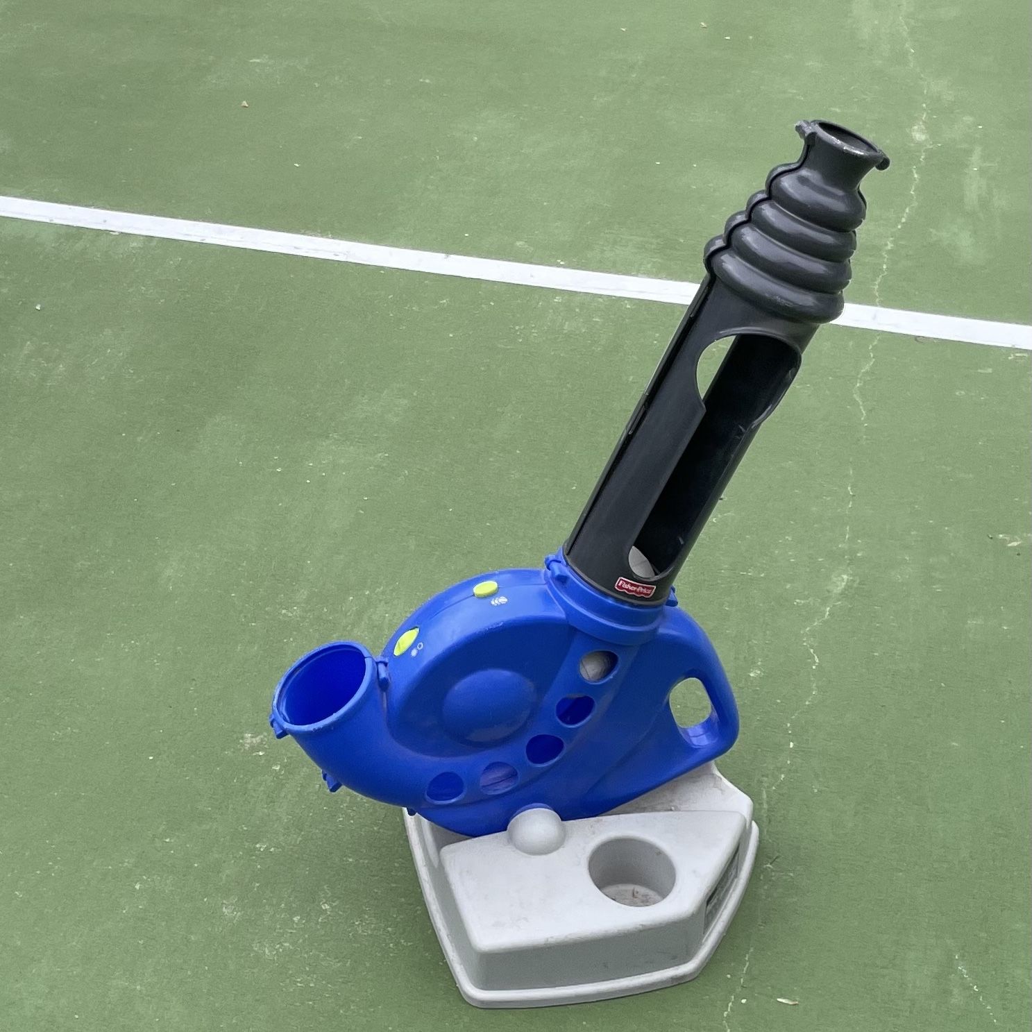 Kids pitching machine and T-ball T. This dual action baseball T comes with balls to load up into the machine and it will pitch it automatically. Has an adjustment for height of pitch. Or just hit the ball off the T! Battery operated . Fun for boys and girls! Balls included.