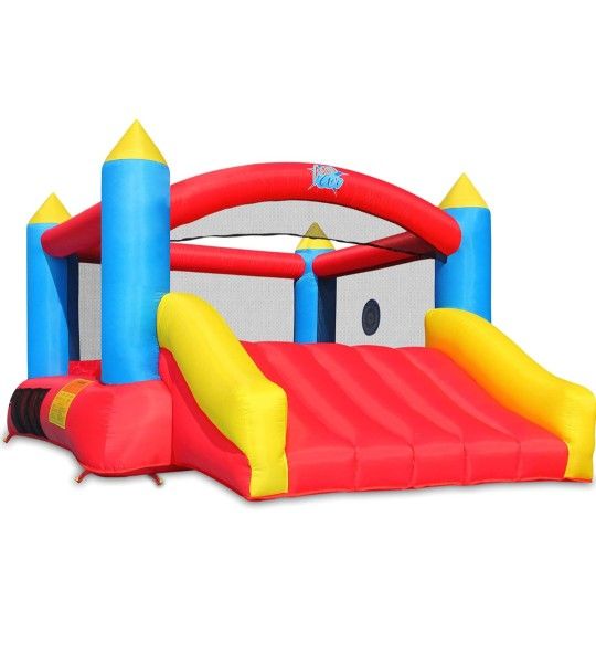 Bounce house with slide. Basically new only used it one time. Realized my kids were to big for it. It's great for kids 3 years - 10 years. Willing to negotiate. Safe for Kids: The jumping area is surrounded by 3 sides of mesh safety netting to protect your children from falling while jumping. Air leak from all the seams is necessary because the product is inflated by constant air flow and this leakage is required to stop the product becoming over-inflated. Extra Thick with Large Jumpin Area: Durable Sewn and extra thick jumping and sliding area. Inflated size 12'L×9'W×6.1'H(ft)/144x108x73 Inches. The inflatable bouncer can easily fit multiple children at one time with a maximum weight of 250 pounds. This jumping house can also encourages kid's major motor skill coordination. Quick Set Up and Take Down: Set-up and take down is easily done in under 3 minutes. This jumping castle is portable and perfect for the park, garage, backyard, etc. This inflatable bouncer includes the bouncer, air blower,repair patches,lawn stakes and a portable carrying bag. Easy to use and carry! Air Blower Included: Our bounce house includes heavy duty air blower. Water cover button and GFCI plug keep you and your kids safe while having fun. Air blower also comes with 25ft long power cord and handheld handle. Powerful and safe blower for bounce house with more fun.