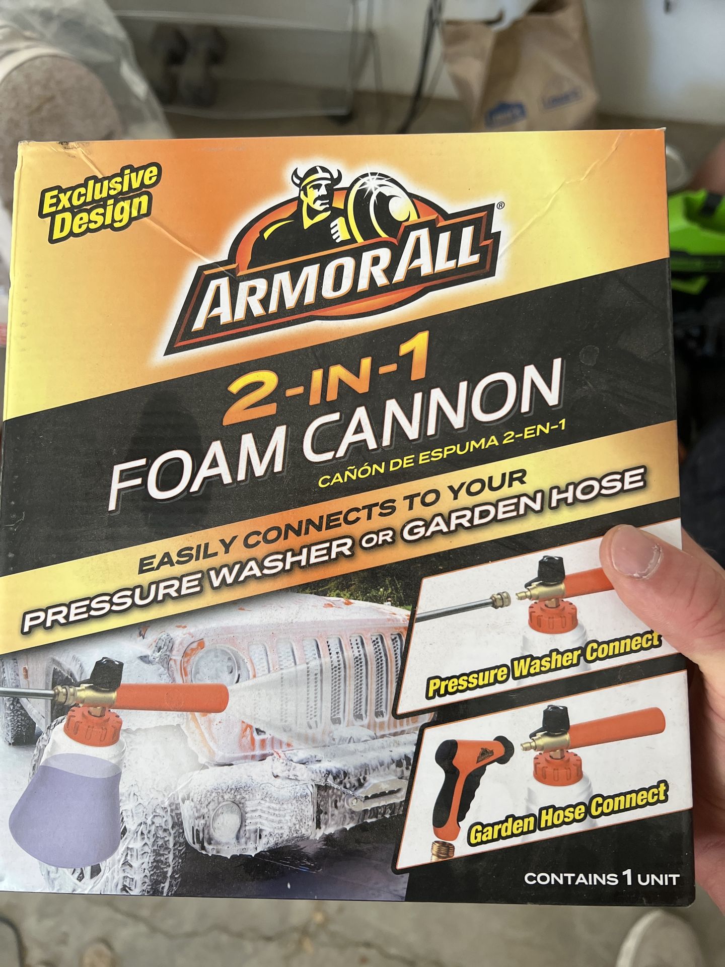 Armor All 2-in-1 foam cannon for washing cars, trucks, and more. Works with both pressure washers and standard garden hoses. Brand new in box. Great for getting that thick foam for a proper wash.