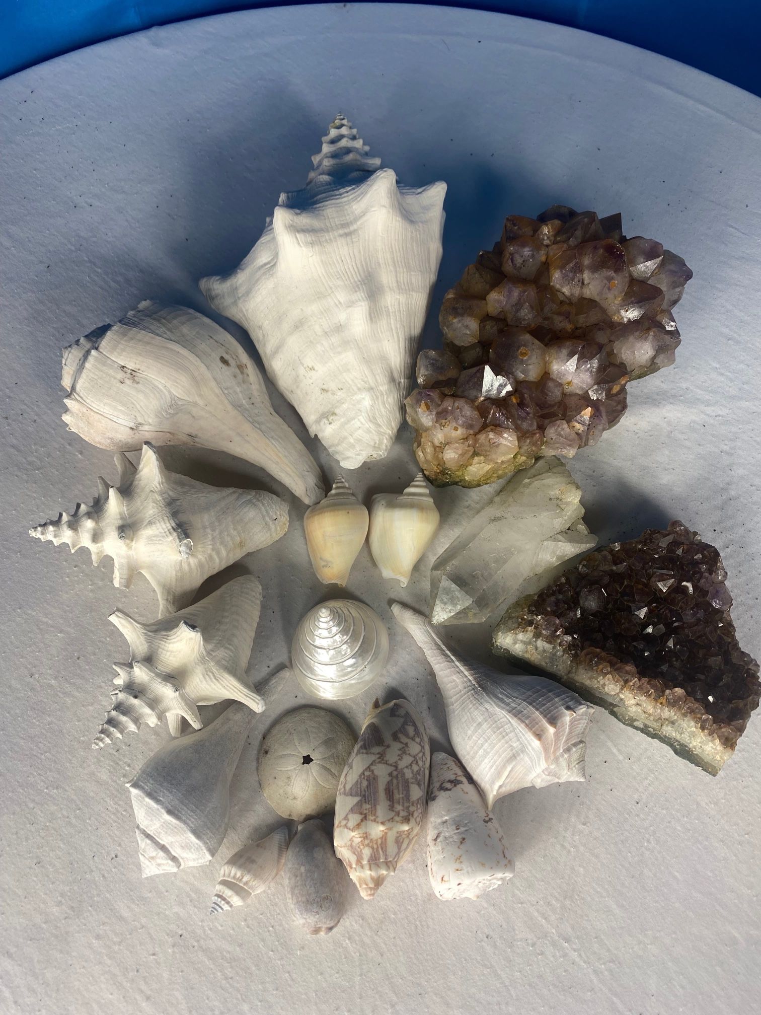 Stones and Shells Collection! This whole collection is sold together! The Largest Conch Shell is 8.5” The Largest Stone is 7” One of the many products we are happy to sell here at Global Galleries LLC. Please reach out regarding any questions or inquiries!