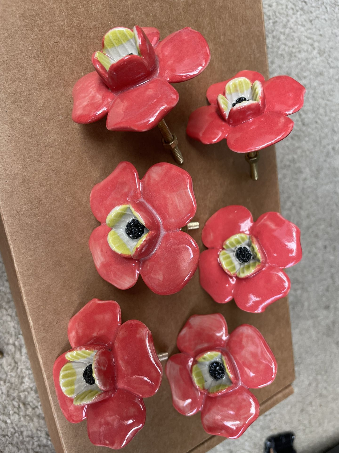 Six drawer pools coral color flower. Excellent condition $45 for all.