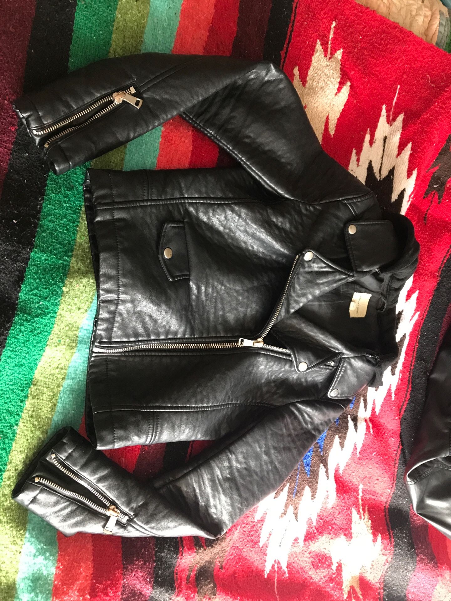 Silence + Noise Leather Jacket Size M with detachable hood. Zippers and linings I’m good condition.