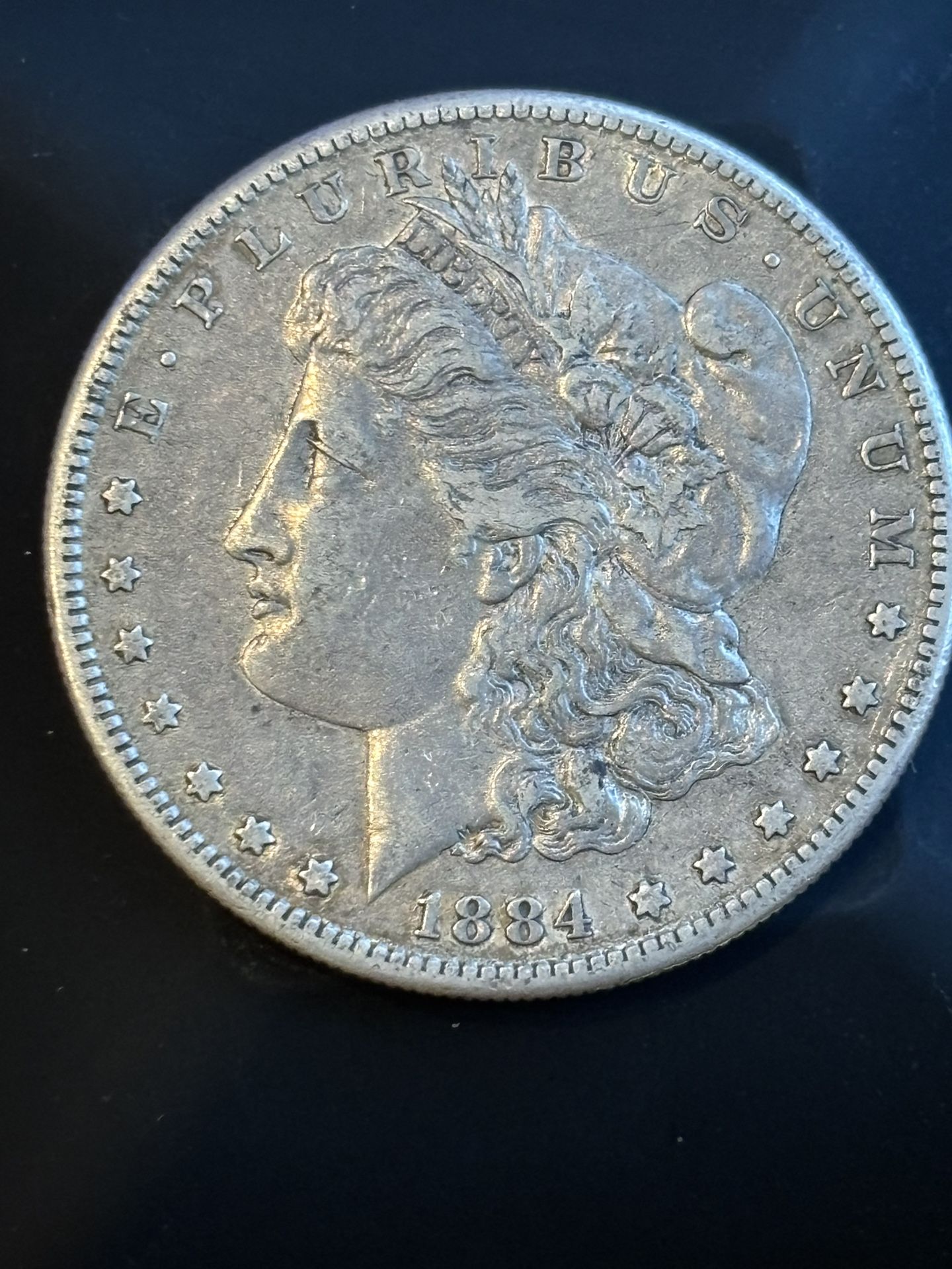 $100 Description: Original 1884 Morgan Silver Dollar, genuine U.S. silver coin. • 90% silver • Common date Morgan • Circulated condition • No holes, no bends, no repairs • Natural wear and light spotting consistent with age Great for: • Morgan collectors • Silver stackers • Gift or starter collection