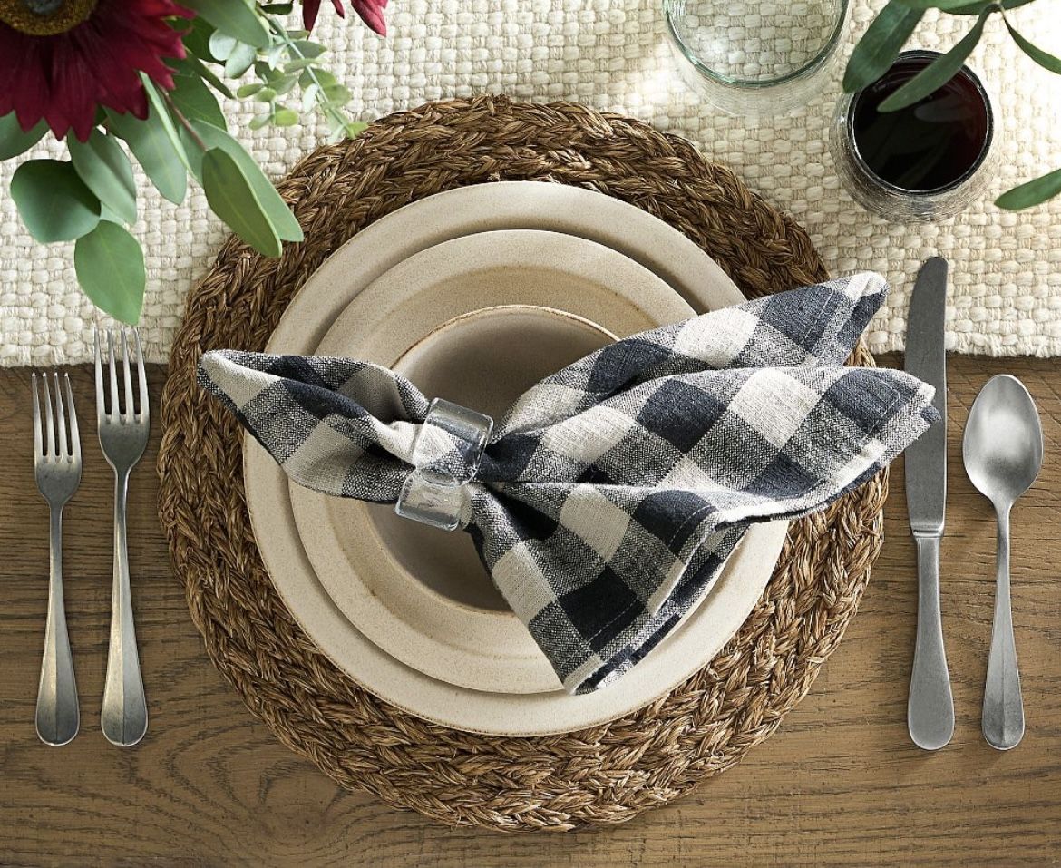Brand New Pottery Barn Black And Cream Checkered Napkins