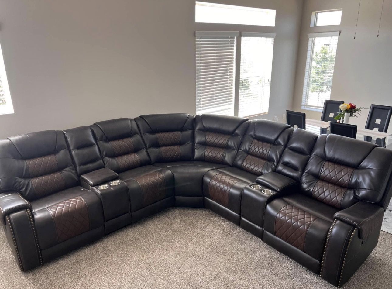 Brown Reclining Sectional With 2 Recliners. Brand New.